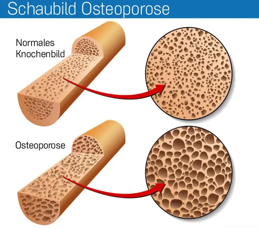 Osteoporose ist eine Knochenkrankheit mit einem hohen Risiko für Knochenbrüche. Sie betrifft sowohl Frauen als auch Männer. Vor dem Knochenbruch zeigen sich bei Osteoporose keine Beschwerden. Die Knochenbälkchen im Knocheninneren (Spongiosa) und deren Verknüpfung sind bei der Osteoporose untereinander vermindert und die äußere Knochenschicht (Kortikalis) ist dünner. Daher besteht bei der Osteoporose ein großes Risiko, einen Knochenbruch zu erleiden.